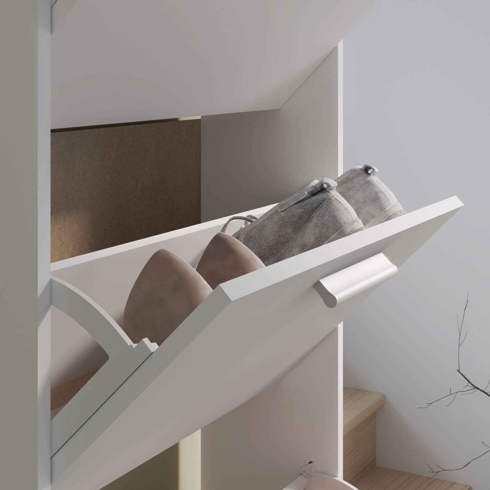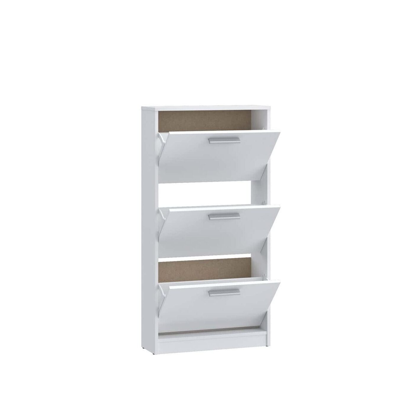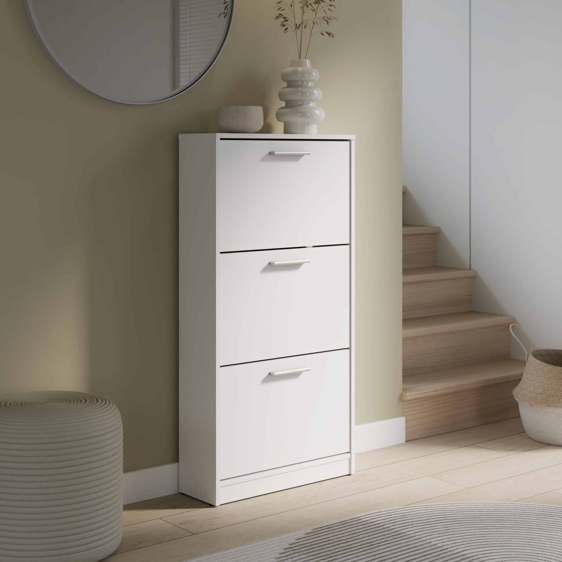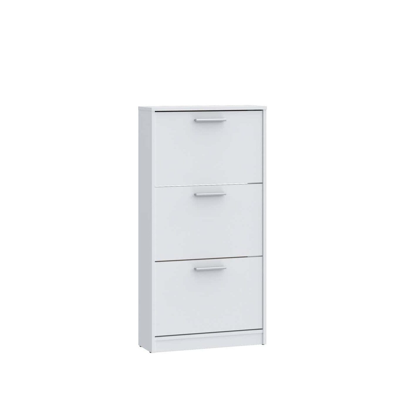 ארון נעליים 3 תאים בצבע לבן בעיצוב מודרני ונקי, המתאים לכל חלל כניסה. כולל חלוקה נוחה לאחסון מסודר של נעליים ושמירה על סדר יומיומי. מבנה קומפקטי לניצול חכם של המקום. פתרון אידאלי לשילוב בין עיצוב לפונקציונליות.