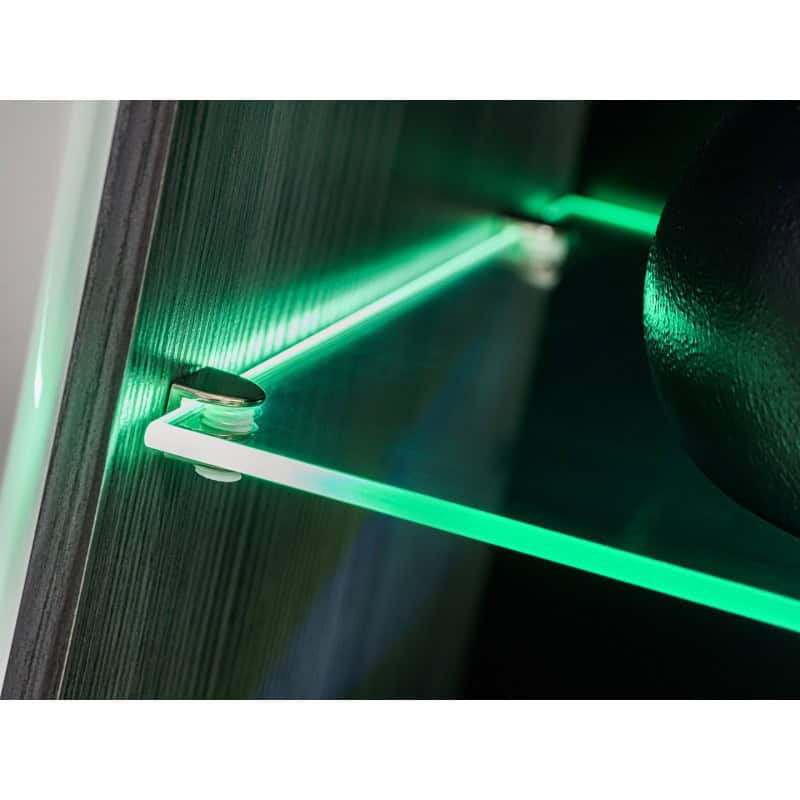 ויטרינה Solido משלבת עיצוב מודרני עם מראה אלגנטי ונקי המתאים לחללים מעוצבים בבית. הקווים הישרים והגימור המוקפד מעניקים לויטרינה מראה יוקרתי המשתלב בצורה הרמונית בסלון, בפינת האוכל או בחלל האירוח. דלת הזכוכית מאפשרת להציג פריטי נוי, כלי זכוכית ואוספים בצורה מרשימה ומסודרת. מדפי הזכוכית המוארים בתאורת LED עדינה מדגישים את הפריטים המוצגים ויוצרים אווירה ייחודית בחלל. בנוסף, השילוב בין הזכוכית למסגרת המודרנית מעניק לרהיט מראה קליל אך בעל נוכחות מרשימה. העיצוב המינימליסטי מאפשר לשלב את הויטרינה בקלות במגוון סגנונות עיצוב מודרניים.