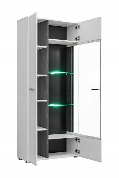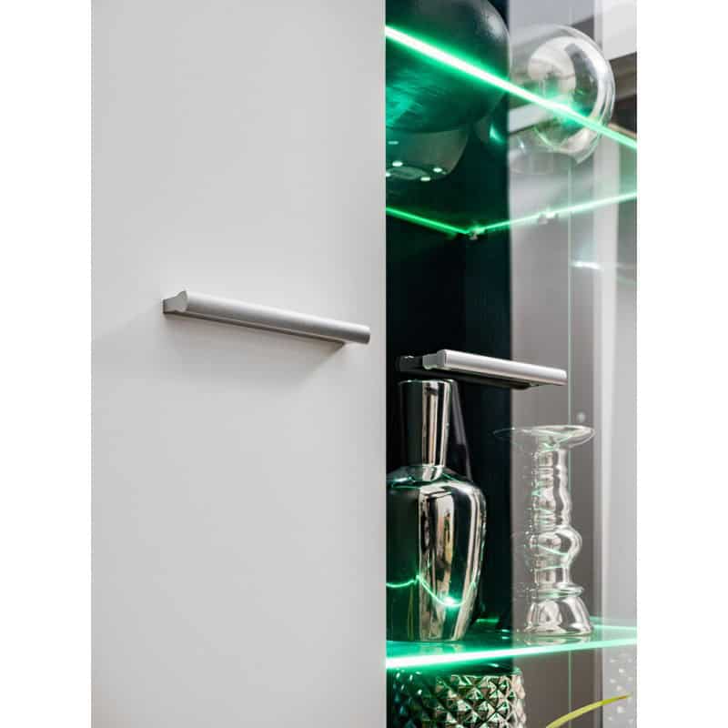 ויטרינה Solodo משלבת עיצוב מודרני עם חזית זכוכית אלגנטית המאפשרת להציג פריטי נוי וכלי זכוכית בצורה מרשימה. מדפי הזכוכית המוארים בתאורת LED מדגישים את הפריטים המוצגים ויוצרים אווירה יוקרתית בחלל. בנוסף, הויטרינה כוללת אזורי אחסון פנימיים לשמירה על סדר וארגון נוח. העיצוב הנקי והגימור האיכותי הופכים אותה לרהיט מרשים המשתלב בקלות בסלון או בפינת האוכל.
